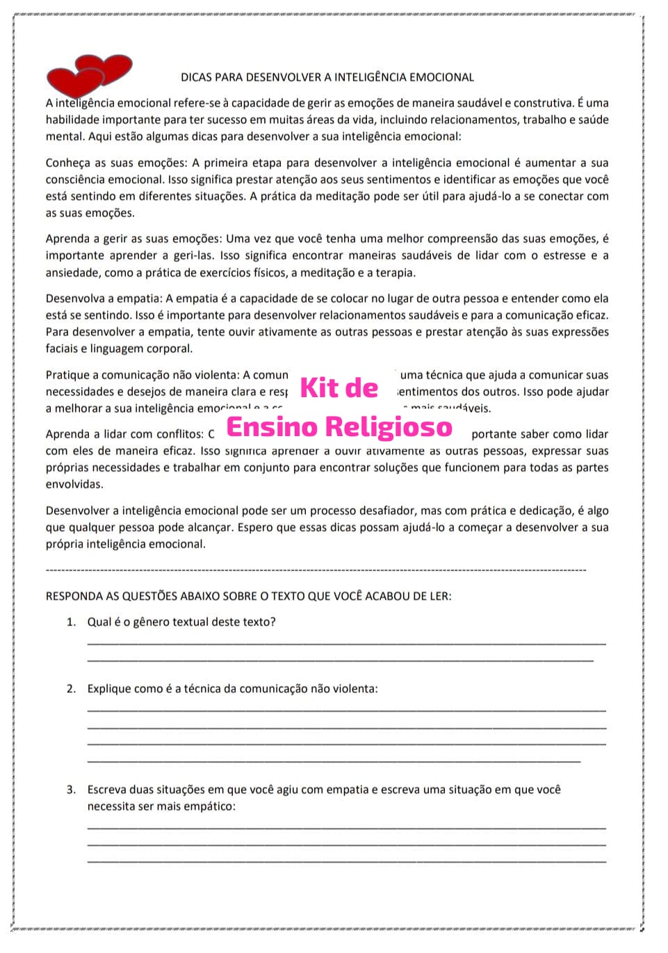- Textos Explicativos: Conteúdo detalhado e acessível que aborda os principais conceitos de emoções, gratidão e bullying, respeito às religiões facilitando o entendimento dos alunos.